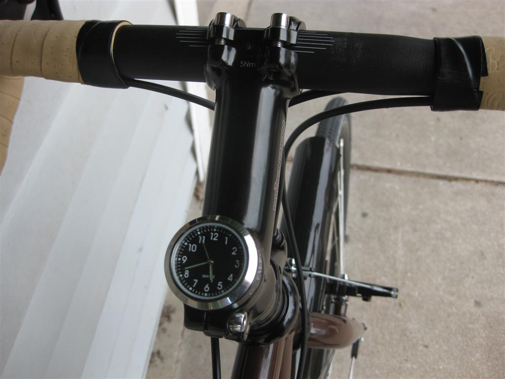 Check out the sweet analogue clock that fits right into the stem. Classy!
