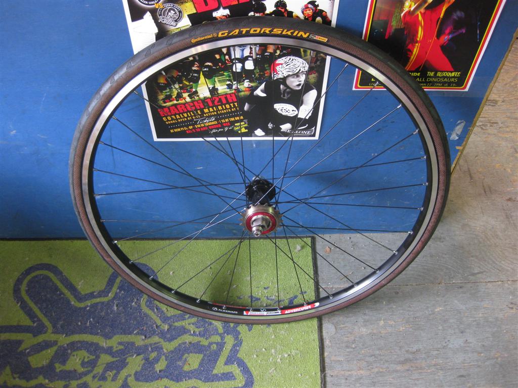 The second is a White Industries ENO single-speed hub laced up to an Alex Adventurer rim with Wheelsmith double-butted spokes.