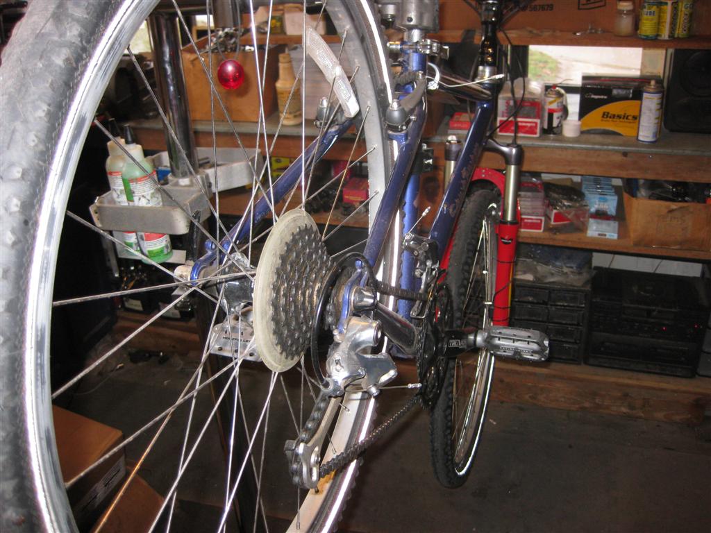 A before photo: regular derailleur-based drivetrain on a mid-90s Specialized Rockhopper.